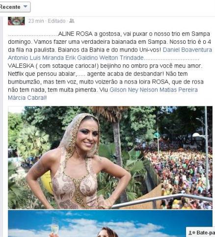 Alinne Rosa será o destaque do trio elétrico da Bahia na 19ª Parada Gay de São Paulo, no dia 7 de junho. A confirmação da ida da cantora foi feita na noite desta segunda-feira (01), pelo presidente do GGB no Facebook.