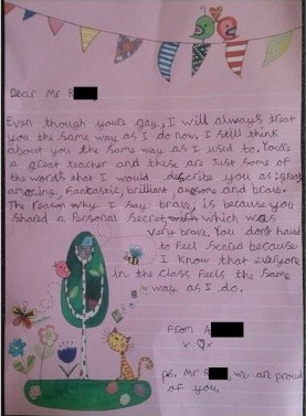 Aluna de 9 anos escreve carta de apoio a professor após ele sair do armário