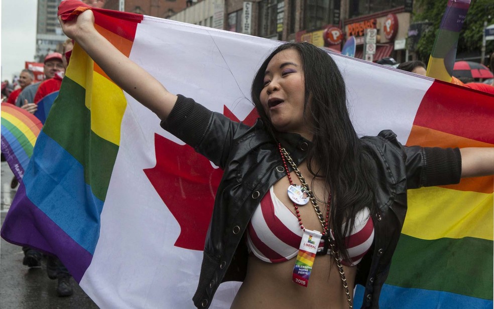 Imagens da parada do orgulho de Toronto, no Canadá, em 2015 — Foto: Chris Young/The Canadian Press via AP