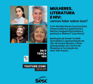 Centro de Pesquisa e Formação do Sesc SP exibe nesta terça (26) uma conversa sobre ‘Mulheres, literatura e HIV: vamos falar sobre isso?’