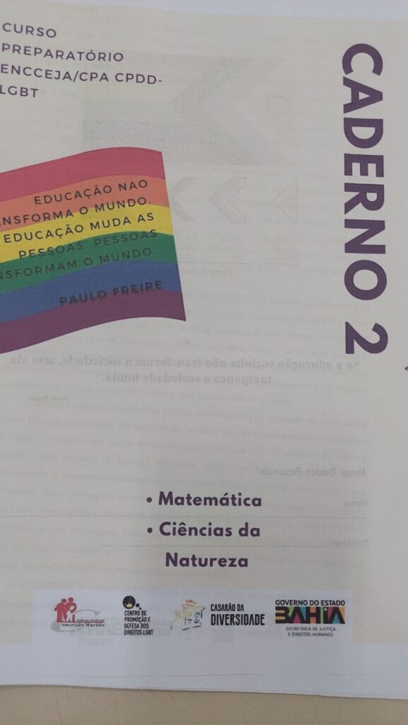 A população LGBTQIAPN+ tem mais uma grande chance de conquistar o tão sonhado certificado de conclusão do Ensino Médio. O curso preparatório para as provas do Encceja (Exame Nacional para Certificação de Competências de Jovens e Adultos), cuja aula inaugural será realizada amanhã, será ministrado gratuitamente no Casarão da Diversidade, na rua do Tijolo, número 8, Pelourinho, em mais uma iniciativa do Centro de Promoção e Defesa dos Direitos LGBT (CPDD LGBT-Ba), instrumento da Secretaria de Justiça e Direitos Humanos, executado pela Instituição Beneficente Conceição Macêdo.