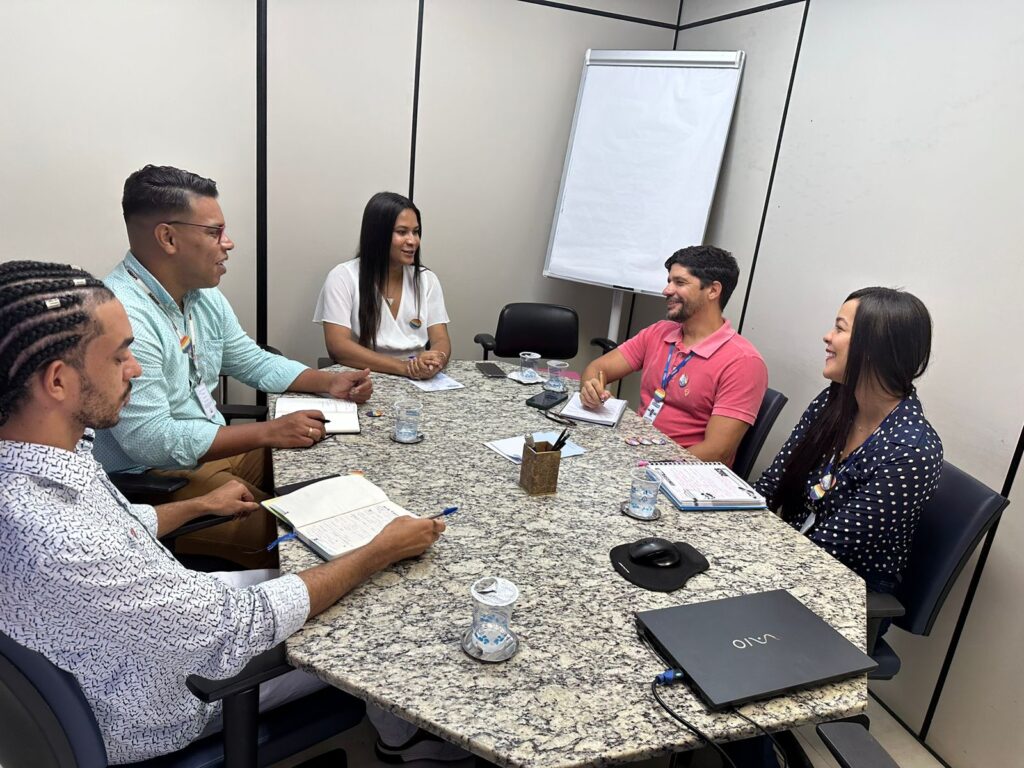 A Coordenação LGBT da Secretaria de Justiça e Direitos Humanos da Bahia (SJDH), se reuniu ontem, 3, com a Comissão de Diversidade da Embasa. O objetivo foi estreitar as relações entre as duas instituições para o fortalecimento de ações conjuntas voltadas à promoção dos direitos das pessoas LGBTQIAPN+. Entre os temas abordados na sede da empresa, estiveram em pauta a 20º Parada do Orgulho LGBT nos Bairros, ações de fortalecimento da visibilidade lésbica, transversalidade e interiorização do debate de direitos humanos e garantia de direitos das identidades trans.