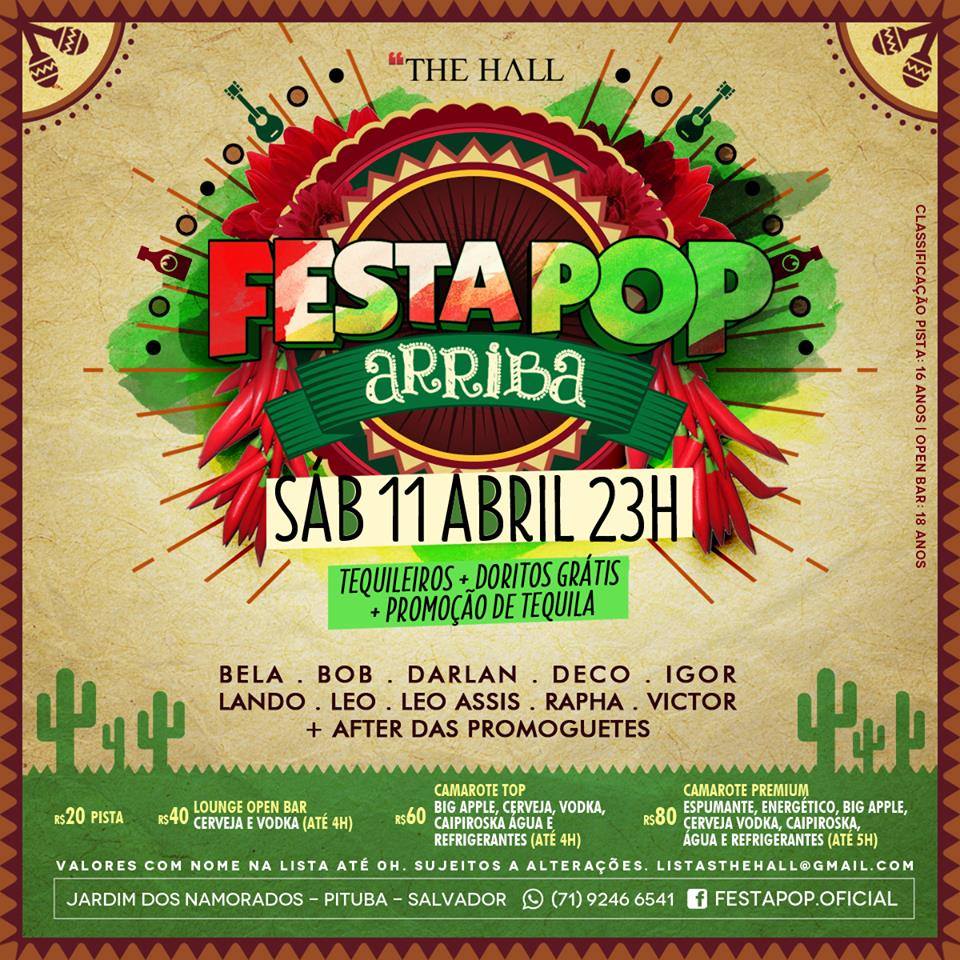Neste sábado (11), a The Hall vai ganhar um tempero diferente com a Festa POP Arriba, a partir das 23h.