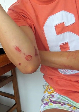 O jovem diz que só deixou de levar chutes depois que começou a morder um dos agressores e quando outro amigo apareceu e tentou jogar um bloco de concreto neles.