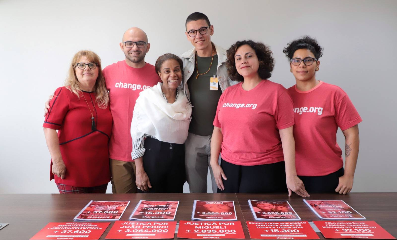 A equipe da plataforma de abaixo-assinados Change.org se reuniu, na manhã de terça-feira (16), com o Ministério dos Direitos Humanos e Cidadania para entregar cinco petições que acumulam quase 6 milhões de assinaturas em pedidos de direitos para pessoas trans e travestis; de justiça para vítimas de racismo; e conclusão para o caso Dom e Bruno.