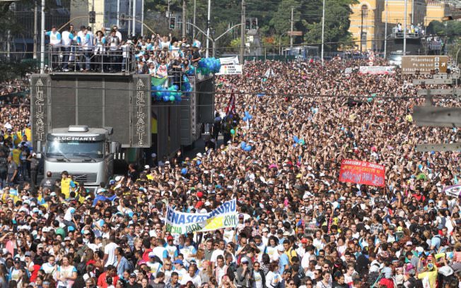 A multidão, estimada pela Polícia Militar em 1 milhão de pessoas – e pelos organizadores em 5 milhões – foi ao delírio e respondeu com gritos de “não, não” com os braços levantados para o céu.