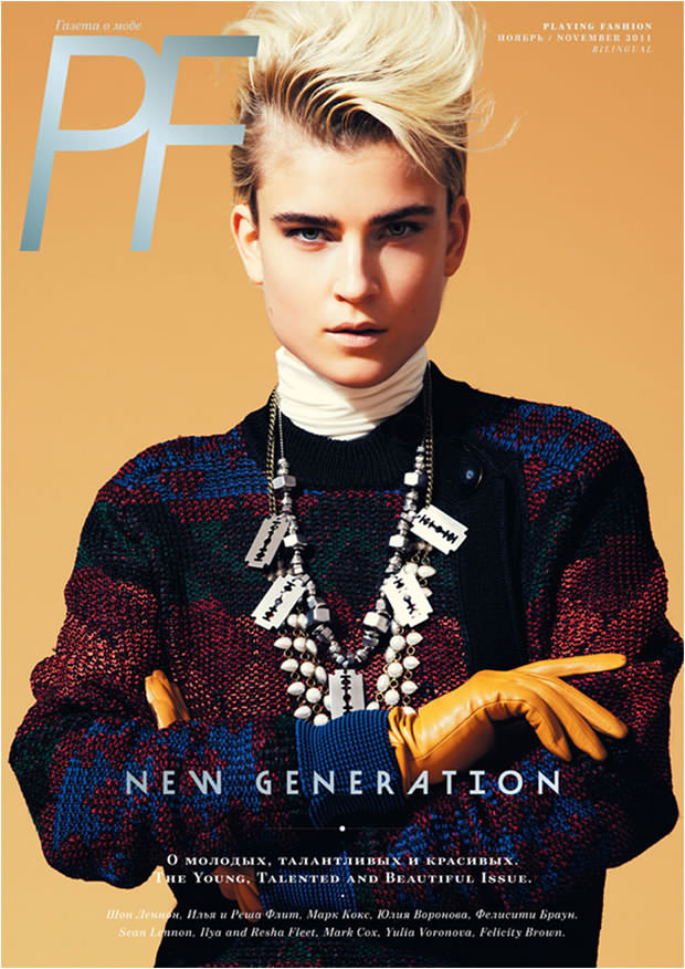 Modelo andrógina toda poderosa na capa da revista Playing Fashion
