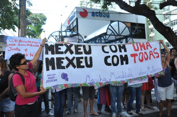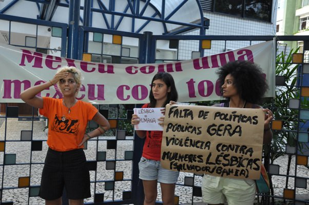 Na tarde desta segunda-feira (04) militantes LGBT’s, a Marcha Nacional das Vadias e o GGB (Grupo Gay da Bahia) protestaram contra a violência sofrida por um casal de lésbicas na última sexta-feira (1º), nas dependências da ACBEU (Associação Cultural Brasil Estados Unidos).