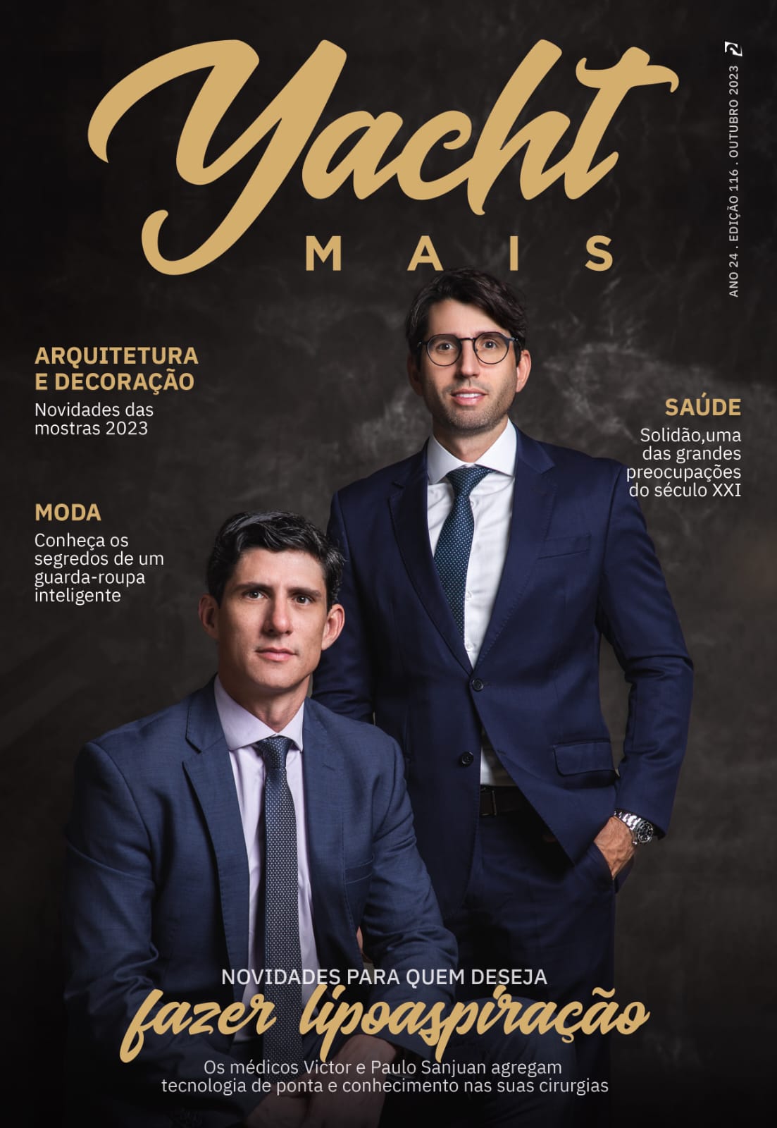 A nova edição traz na capa principal os cirurgiões plásticos e sócios da Clínica Sanjuan, Victor e Paulo Sanjuan, que falaram sobre a evolução das tecnologias em prol da lipoaspiração. Já a segunda capa aborda todos os detalhes da Faculdade Zarns, instituição que promete se tornar referência do ensino da Medicina no país.