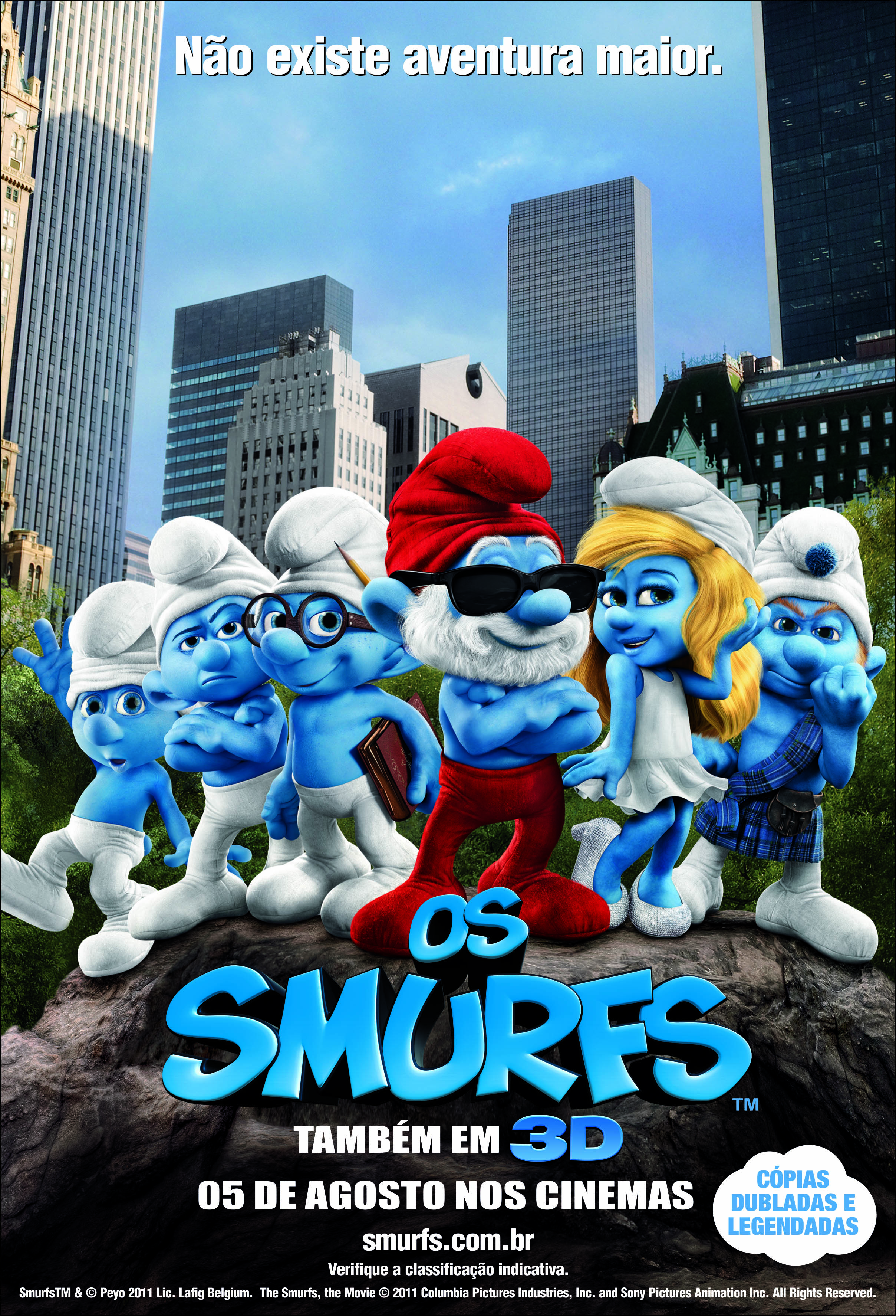Os espectadores de todo o mundo vão voltar a se divertir com os seres azuis e a chegada dos Smurfs ao cinema 3D na comédia para a família da Columbia Pictures/Sony Pictures Animation, misturando live-action e animação, The Smurfs. Quando o mago malvado Gargamel expulsa os pequenos seres azuis da sua vila, eles rolam do seu mundo mágico e caem no nosso – mais precisamente, bem no meio do Central Park de Nova York. Os Smurfs precisam encontrar um jeito de voltar para a vila antes que Gargamel os localize.