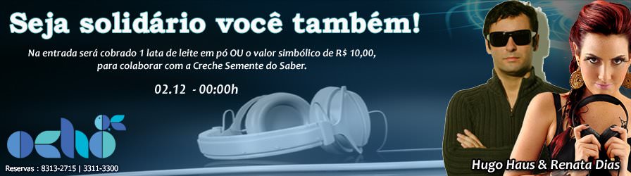 “Minha família já ajuda esta instituição há tempos e resolvi começar por ela, porque acompanho o sacrifício da responsável pelo espaço e o amor que ela tem em seu coração pelas crianças que cuida”, disse Renata sobre a Semente do Saber. A entrada será uma lata de leite em pó, somente. A DJ e o Ocho esperam toda a ajuda possível de pessoas que realmente se importam com a solidariedade humana.