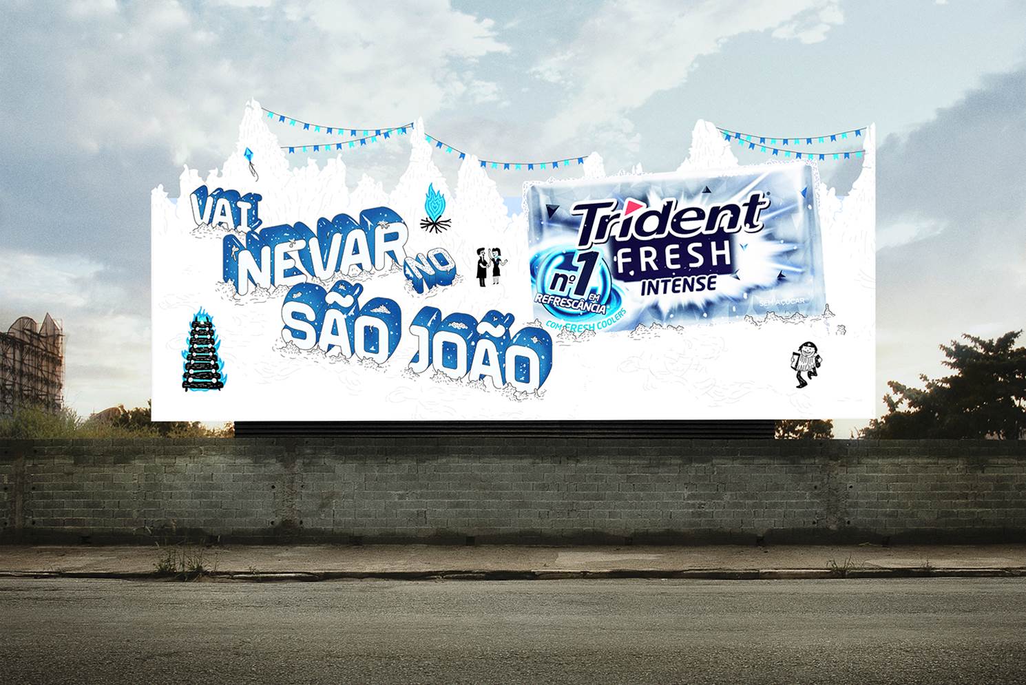 Através do show de neve, os nordestinos acompanharão a “Frente Fria Trident Fresh” invadir a região. A sensação de refrescância intensa da goma de mascar será percebida com ações inéditas de brandexperience nos principais polos juninos: Caruaru (PE), Santo Antônio de Jesus (BA) e Campina Grande (PB).