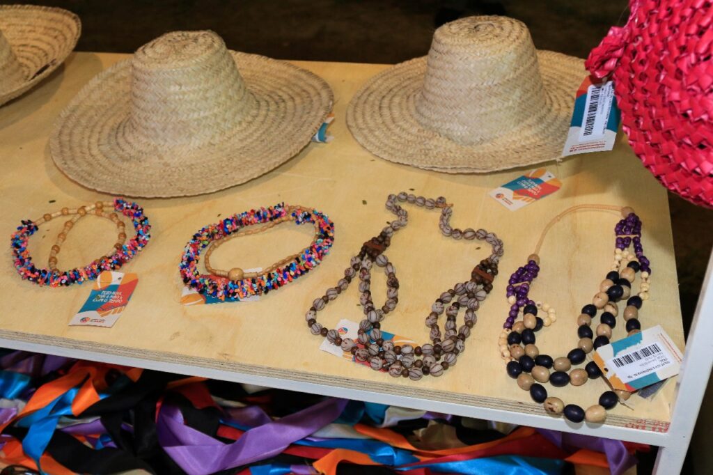 Na loja vitrine, o público poderá adquirir pequenos souvenirs, acessórios e adereços, como brincos, colares, pulseiras, bolsas e lenços, para combinarem com seus looks. São opções de peças que podem ser usadas no momento da compra, para compor o visual junino.