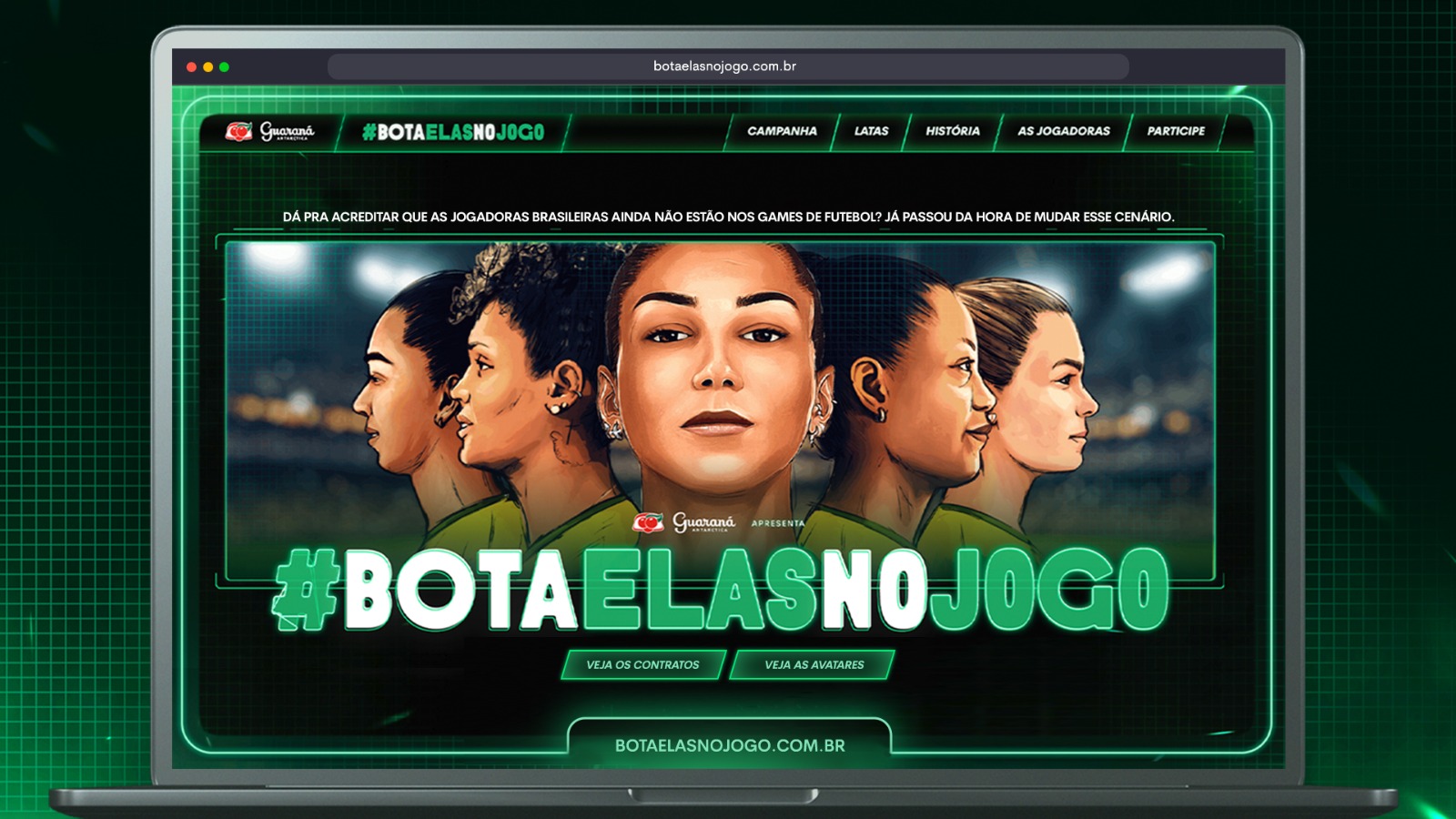Dando continuidade ao #BotaElasNoJogo, movimento alinhado aos compromissos assumidos pela Ambev e suas marcas pela equidade de gênero, sobre a falta de representatividade feminina nos jogos eletrônicos, Guaraná Antarctica foi entender as razões pelas quais as jogadoras ainda não estavam nos games. E, com base nos impasses para colocá-las nos jogos, a marca criou as soluções com esse site. “Adiantamos boa parte do processo para realmente facilitar a inclusão das nossas craques nos games. Queremos ver nossos consumidores jogando com suas atletas favoritas e torcendo pelo futebol feminino, assim como a gente”, comenta Giuliana Cittadino, gerente de Marketing de Guaraná Antarctica.