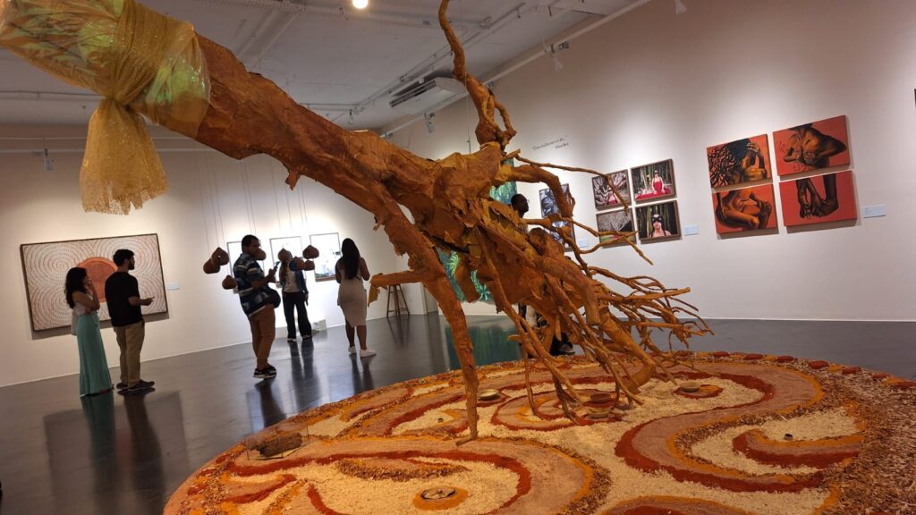 “‘Raízes: Começo, Meio e Começo’ entrelaça a circularidade do tempo, refletindo sobre tecnologias ancestrais. Presente, futuro e passado formam as raízes de um grande baobá. A diáspora afro-brasileira é uma ramificação dessa raiz ancestral”, explica a curadora Jamile Coelho, também diretora do Muncab.