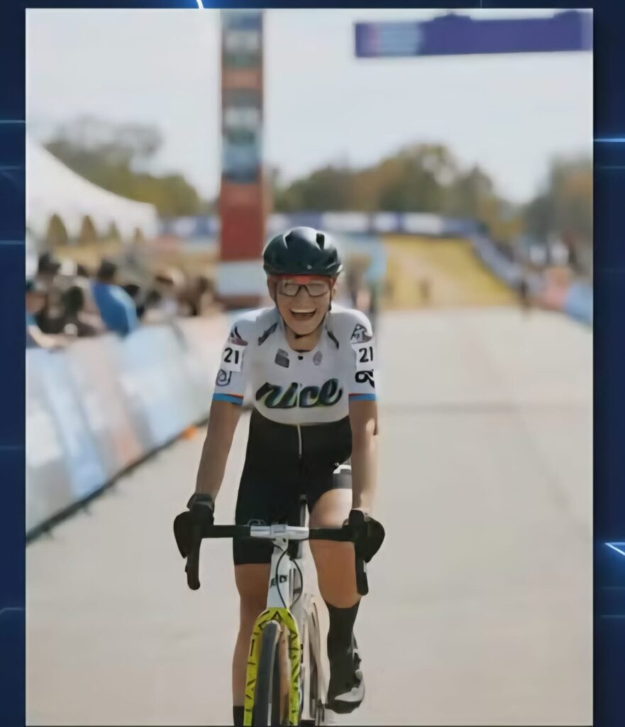 Austin Killips, a primeira mulher transgênero a vencer uma prova feminina oficial de ciclismo — Foto: Reprodução/TV Globo