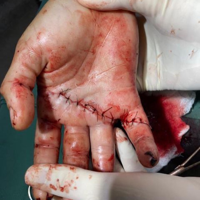 No dia 03/07/21, a ameaça se tornou real. Fui golpeado pelo meu padrasto, no rosto e na mão com um facão. Corri ensanguentado, sem saber pra onde ir, querendo socorro. Fui hospitalizado, peguei vários pontos no rosto e na mão. Não consigo mexer dois dedos da mão. Parece um pesadelo.