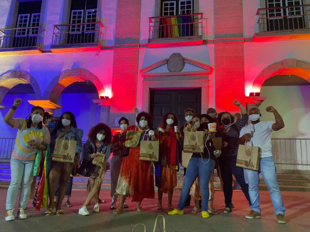Mandata das Pretas Por Salvador marca presença em ato que iluminou o prédio da Câmara Municipal de Salvador com as cores do movimento LGBTQIA+