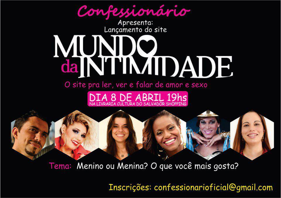 Este é o tema do programa “Confessionário” comandado pela jornalista Aline Castelo Branco, na radio Metrópole, que será realizado no dia 8 de abril, a partir das 19h, na Livraria Cultura do Shopping Salvador. O programa terá a participação das cantoras Aila Menezes e Ludmillah Anjos que vão conversar sobre sexo e relacionamentos, tudo com muito humor e descontração . Para apimentar ainda mais o debate, participarão do programa a doutora Karla Kalil e o ator Daniel Rabello, que prometem uma noite especial para mexer com o imaginário do público.