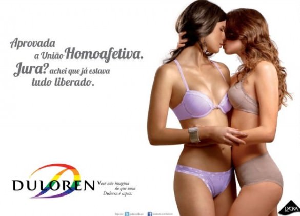 A Duloren resolveu causar com duas mulheres se acariciando. A nova campanha publicitária quem tem como título: “Aprovada a união homoafetiva. Jura? Achei que já estava tudo liberado.” Vai ser motivo de muitos comentário e debates nos próximos dias.