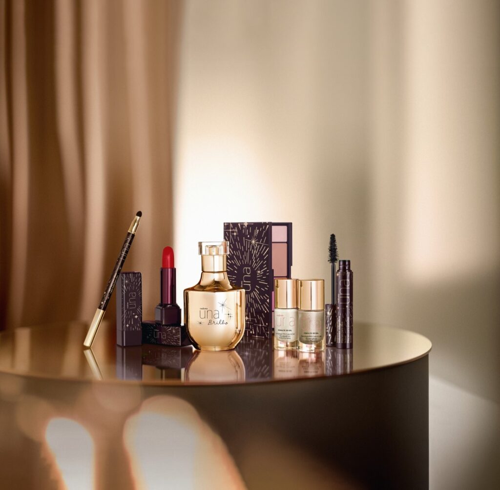 Inspirada nas celebrações da vista, Natura lança sua exclusiva coleção UNA Brilho com cores sofisticadas e alta pigmentação em produtos para um look completo para as festas de final de ano. Com produtos que passam por fragrância, paleta, máscara para cílios, batons, lápis kajal e esmaltes, a coleção é um convite à celebração da beleza.