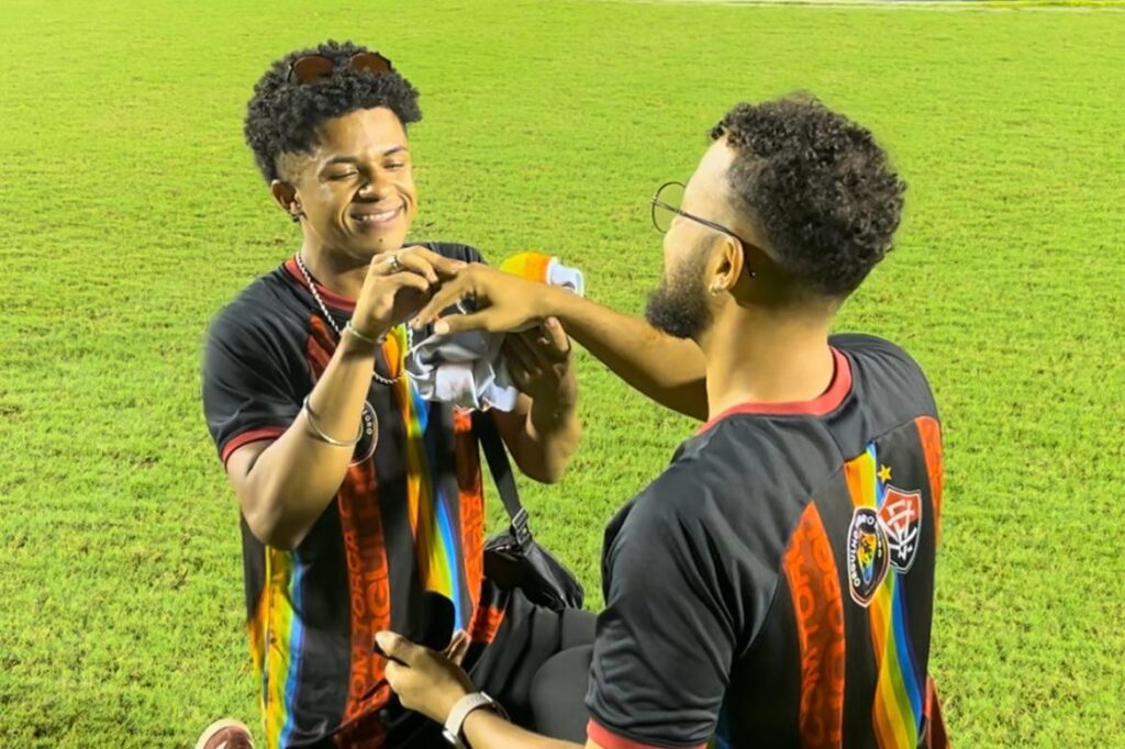 Presidente de torcida LGBT+ pede companheiro em casamento no campo do Vitória
