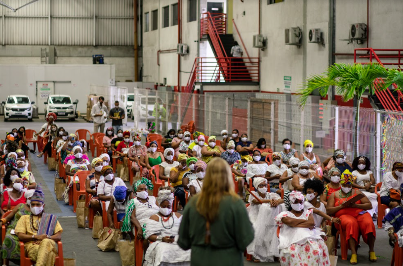 Além do apoio aos bares e restaurantes, o #GPcomVC também levou alento a um grupo de 500 baianas de acarajé, membros da ABAM, associação das baianas. Elas ganharam azeite de dendê – insumo fundamental para a produção da iguaria e que inflacionou no último ano. Além disso, cada baiana recebeu um kit de EPIs, máscaras, álcool em gel e também um treinamento que mostrou como voltar a atender clientes na pandemia, mantendo os cuidados para conter a disseminação do vírus. As baianas de acarajé da capital baiana e de outras 10 cidades da Região Metropolitana de Salvador ganharam ainda produtos do Grupo Petrópolis – como água – para venderem e ajudarem em seus fluxos de caixa.