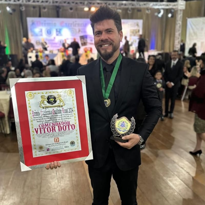 O empresário e CEO da Doto Engenharia, Vitor Doto, recebeu Título de Comendador em São Paulo, sendo reconhecido na categoria Personalidade do ano, Destaque nacional, Mérito Social Empresarial, Cidadão que acrescenta à nação e Exemplo digno de ser seguido por todas as pessoas de boa fé, honestas e de caráter voltado em prol de uma sociedade mais igualitária, justa e perfeita. Promovido pela Associação Brasileira de Excelência, o Prêmio Excelência e Qualidade Brasil 2024 que destaca os melhores do ano, teve evento de outorga realizado com grande jantar de gala no Esporte Clube Sírio, no Ibirapuera, reunindo também diversos outros profissionais. “O reconhecimento veio na hora certa”, enfatiza Vitor Doto ao falar da comenda recebida.
